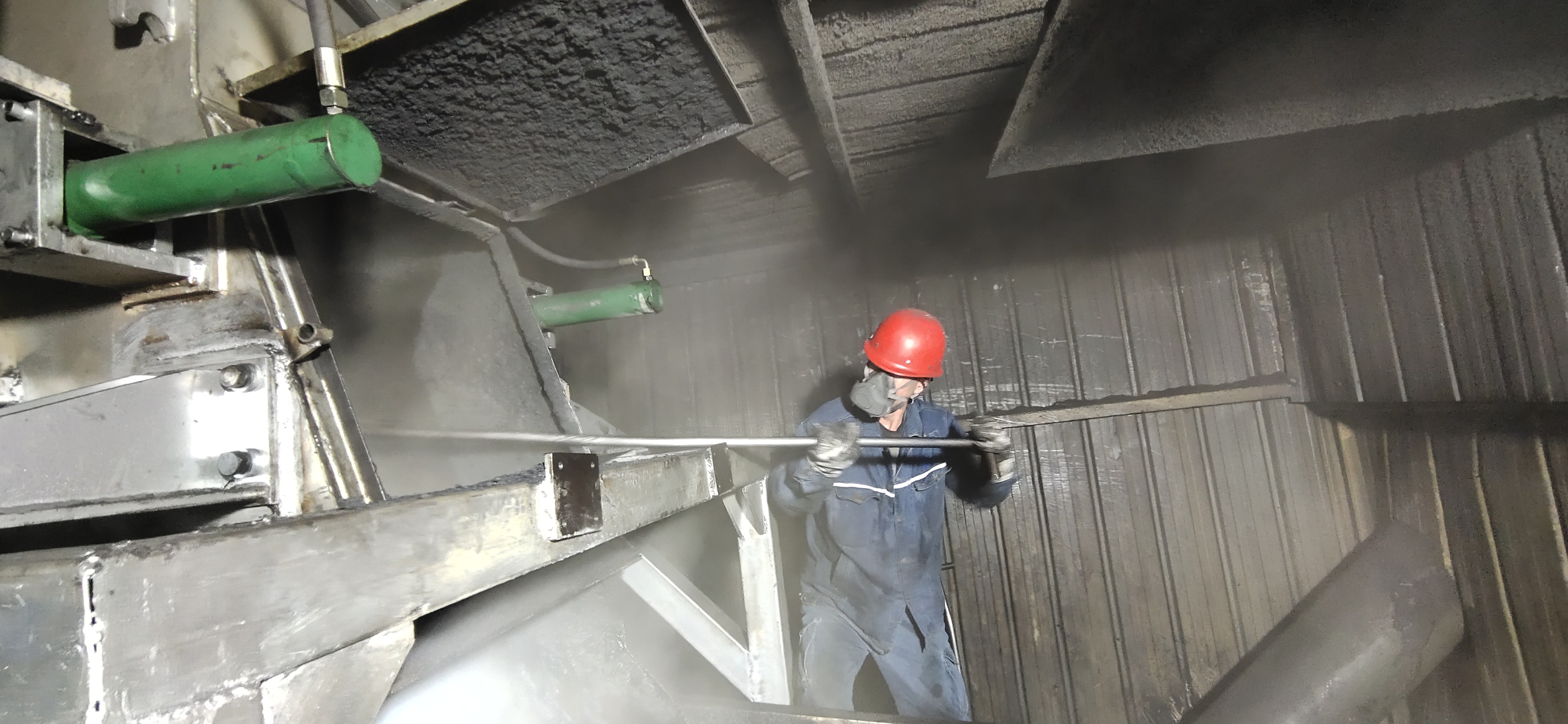 成型車間振動料槽因經常性粘料及下料不均勻等問題導致陽極生塊麻面嚴重、裂紋頻出,嚴重影響了產品質量,經分公司研究,對其進行專項技改,技改換裝工作已于1月19日完成,目前正處于生產調試階段。 1月22日12時30分,成型車間響徹著“叮叮咣咣”的嘈雜聲,車間檢修人員正在搶修故障設備。據了解,當班人員發現機器操作系統突然顯示振動料槽下料不正常,經排查,是一塊糊料卡于振動料槽中段,上方糊料不斷涌下堵于該處,短短幾分鐘就擁堵2米多深,如果處理不及時,極易引發安全生產事故。根據現場狀況,現場人員立即分工,一組人負責清理冷卻機內部糊料,防止糊料冷卻凝固損壞設備,一組人負責振動料槽及料管疏通清理,安全員負責搶修全過程安全監控。正值冬季,晚上室外最低氣溫已經達到零下十度,在清理過程中,糊料逐漸冷卻凝結,變得異常堅硬,簡單的工具已無法滿足搶修需要,只能利用電錘、撬杠、脫模劑等現有工器具。大家同步進行,輪番上陣,你一錘,我一鏨,料渣濺在身上,粉塵彌漫在空中,沒有人抱怨,也沒有人休息,因為每個人都清楚,搶修工作不僅是跟體力抗衡,也是在跟時間賽跑。功夫不負有心人,經過8個多小時的艱苦奮戰,堵料部位完全清理干凈,檢修人員對設備進行調試正常后,設備恢復正常生產。看著提升機成功啟動后,大家伙兒終于松了一口氣,說道:“早一刻清理完成就能早一刻啟動,才能保證生產任務的順利完成。分公司就此次搶修召開專題研討會,分析堵料原因,經過與廠家溝通確定相關參數,對振動料槽密封蓋板再次進行優化改造,杜絕再次發生此類事件。本次搶修工作,不僅提升了成型車間事故處置能力,而且增強了團隊合作意識,為車間的安全穩定運行積累了寶貴經驗。 |