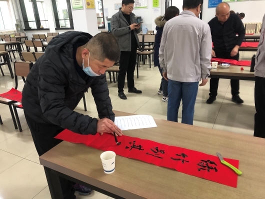 古往今來,春節貼春聯,是對新年的憧憬與盼望,更對未來的向往與期許。此次活動中,書法愛好者們筆法秀逸、行云流水,一展自我風采。一幅幅紅紅的春聯,對仗工整、清新秀麗;一張張喜慶的福字,筆勢雄奇、蒼勁有力。吸引了眾多聞訊而來的職工,大家一邊欣賞著已書寫完成的對聯,一邊挑選著自己心儀的對聯內容。有的職工還邀請中意的“書法大師”為自己量身定制一副獨一無二的春聯內容,現場氣氛歡樂祥和。