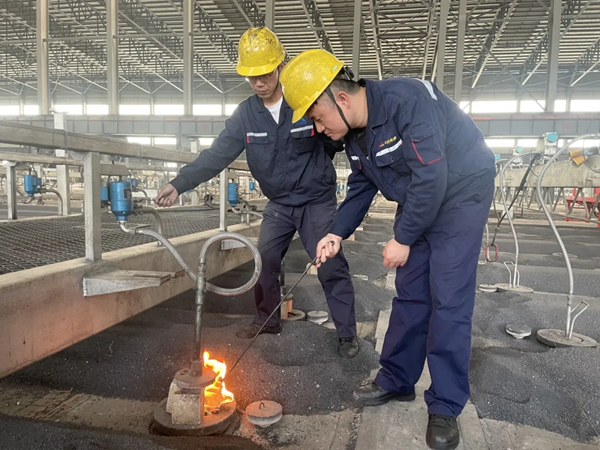 為進(jìn)一步滿足陽極代加工生產(chǎn)任務(wù)需求,有效釋放富裕產(chǎn)能,5月6日,陽極分公司焙燒車間點火啟動2#焙燒爐2#燃燒系統(tǒng),分公司領(lǐng)導(dǎo)及部室相關(guān)人員到場指導(dǎo)。此次點火啟動后,預(yù)計預(yù)焙陽極產(chǎn)量較之前可增長25%。 啟動前夕,為保證點火啟動順利完成,分公司相關(guān)部門、車間結(jié)合前期啟動經(jīng)驗,重新完善審定啟動方案及應(yīng)急預(yù)案,安排專人反復(fù)檢查爐室及設(shè)備狀況,組織調(diào)溫工進(jìn)行點火啟動方案學(xué)習(xí)及應(yīng)急演練。烘爐作業(yè)嚴(yán)格按照32h移爐周期,在2#焙燒爐43#爐室,實行3室點火運行按移爐周期逐步恢復(fù)至7室運轉(zhuǎn)。啟動過程中,作業(yè)人員協(xié)同配合,由1火道至9火道交替點燃,手動調(diào)整控制火焰,在調(diào)溫工的操作下,點火啟動一次性成功。 在接下來的烘爐階段,車間將持續(xù)加強現(xiàn)場巡視檢查,嚴(yán)肅24小時值守紀(jì)律,及時關(guān)注火焰情況并對出相應(yīng)調(diào)整,避免噴氣量過大發(fā)生“聚氣”現(xiàn)象,確保燃燒架溫度能按照既定升溫速率穩(wěn)步提升。 |